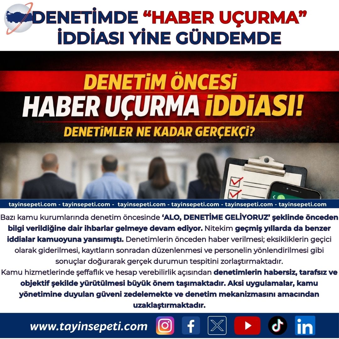 Kamu hizmetlerinde şeffaflık ve hesap verebilirlik açısından denetimlerin habersiz, tarafsız ve objektif şekilde yürütülmesi büyük önem taşımaktadır. Aksi uygulamalar, kamu yönetimine duyulan güveni zedelemekte ve denetim mekanizmasını amacından uzaklaştırmaktadır.