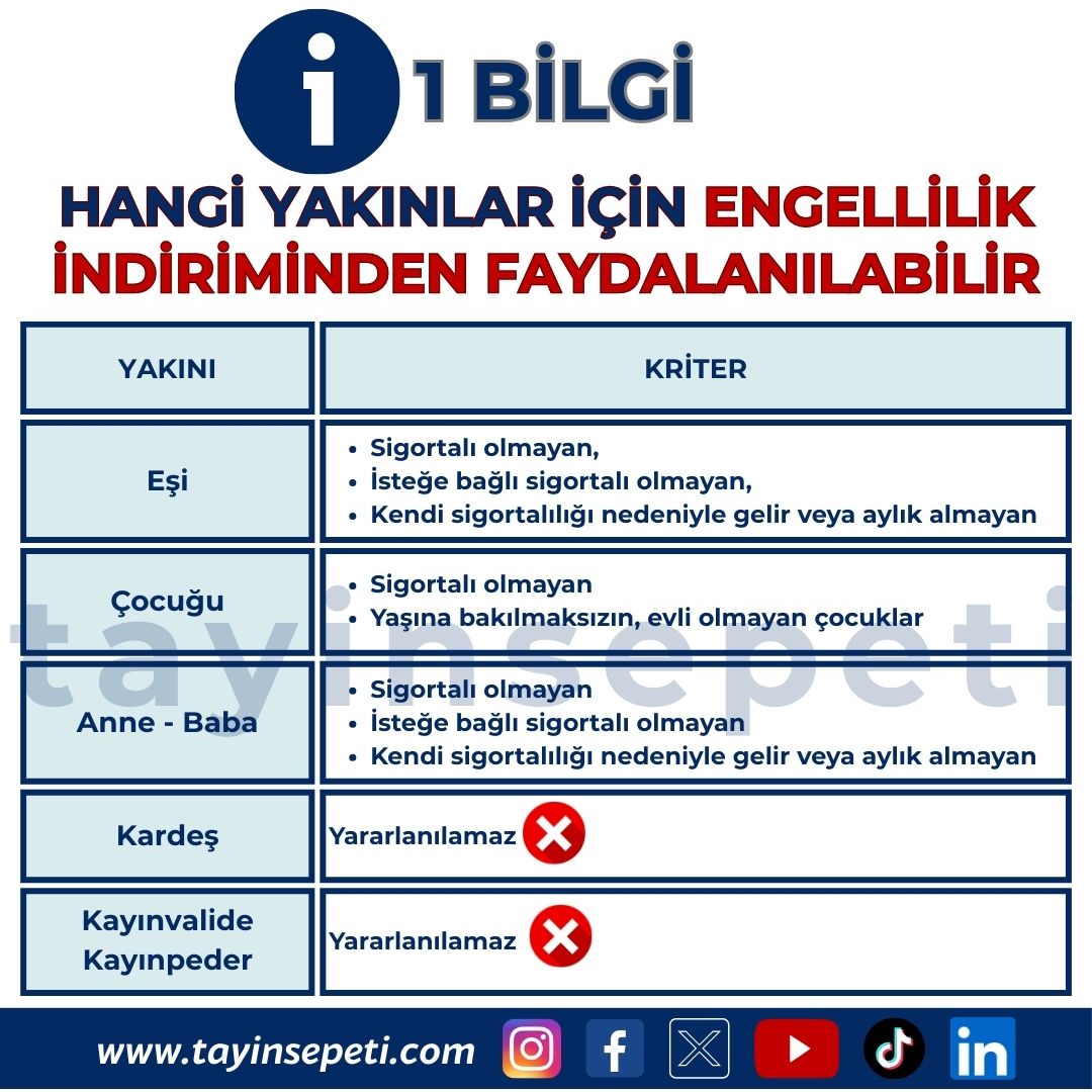 HANGİ YAKINLAR İÇİN ENGELLİLİK İNDİRİMİNDEN FAYDALANILABİLİR