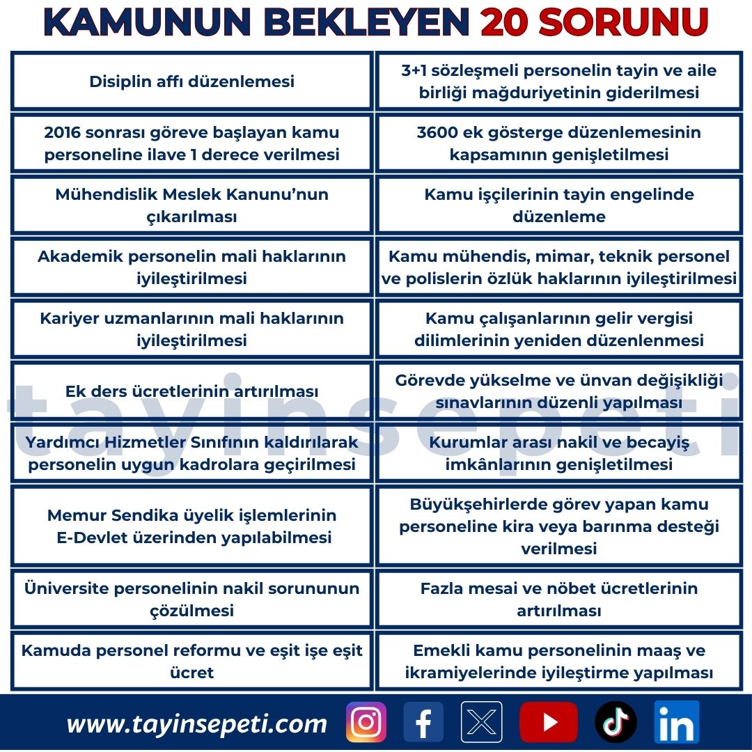 KAMUNUN BEKLEYEN 20 SORUNU