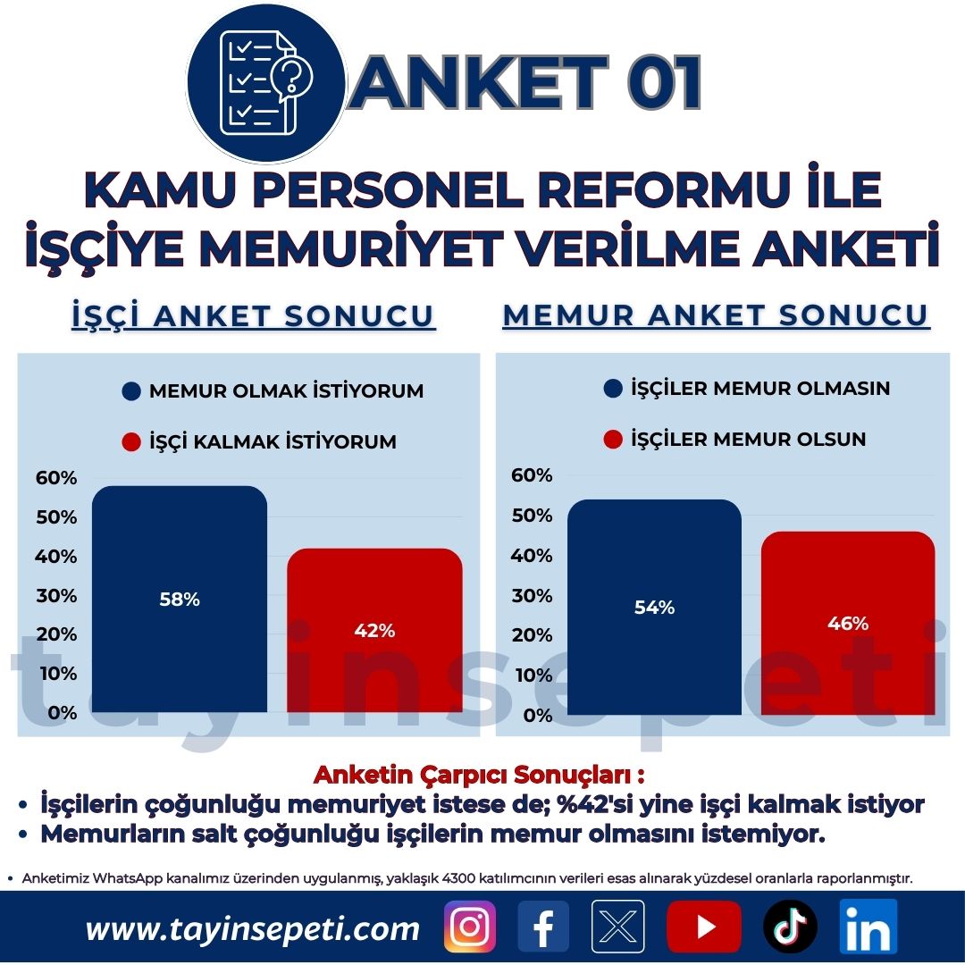 KAMU PERSONEL REFORMU İLE İŞÇİYE MEMURİYET VERİLME ANKETİ
