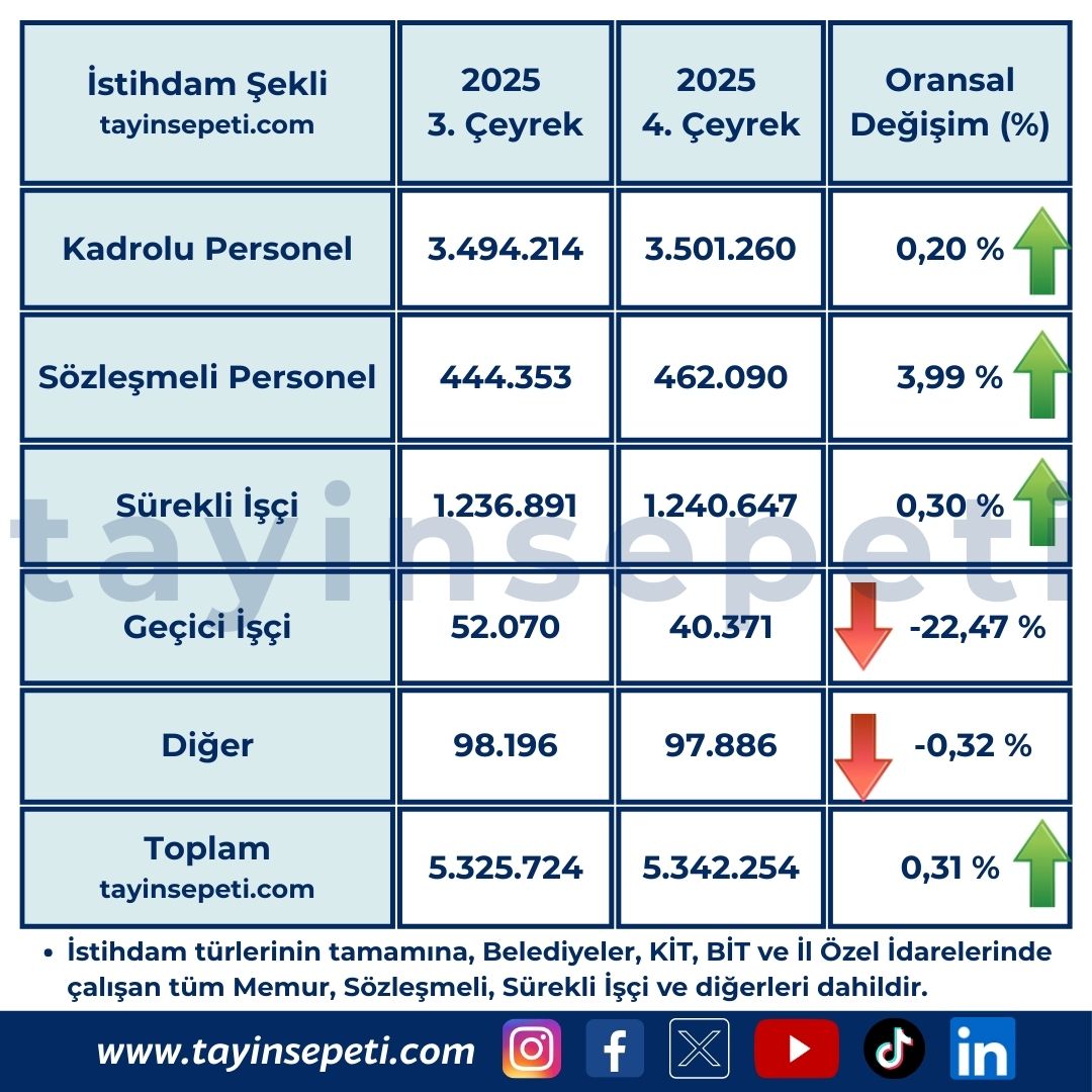 KAMU PERSONEL SAYILARI 2025 - 4. ÇEYREK