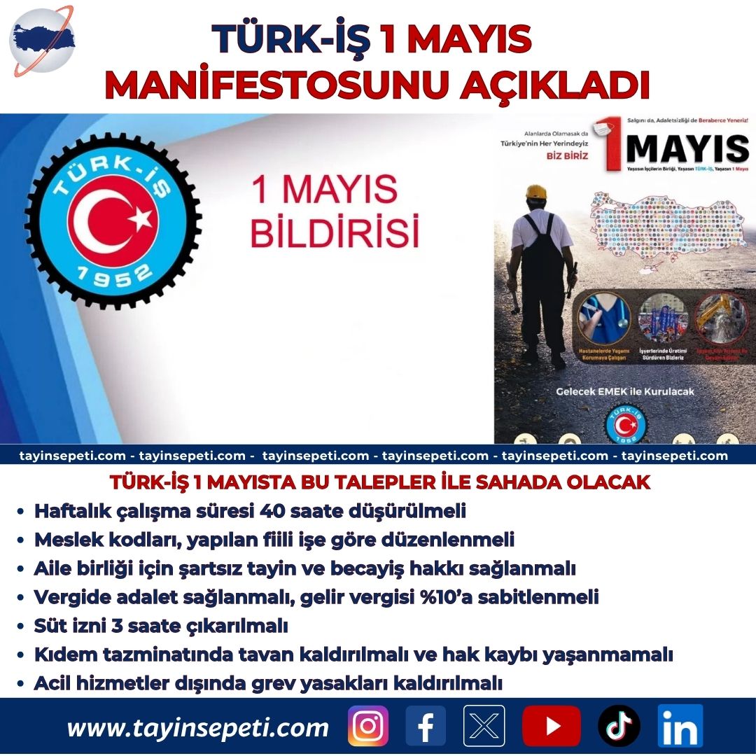 TÜRK-İŞ 1 MAYISTA BU TALEPLER İLE SAHADA OLACAK