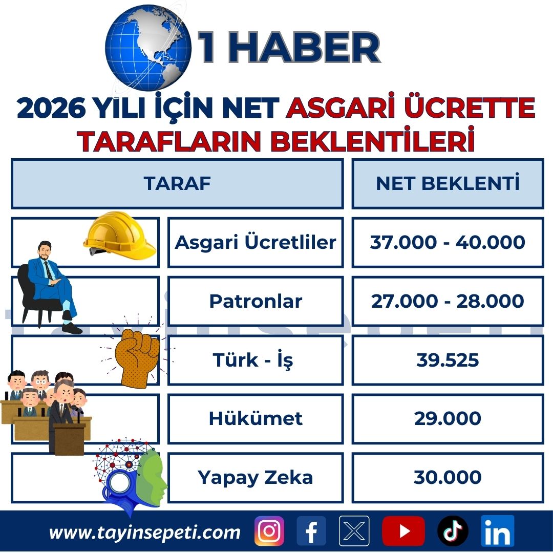 2026 YILI İÇİN NET ASGARİ ÜCRETTE TARAFLARIN BEKLENTİLERİ