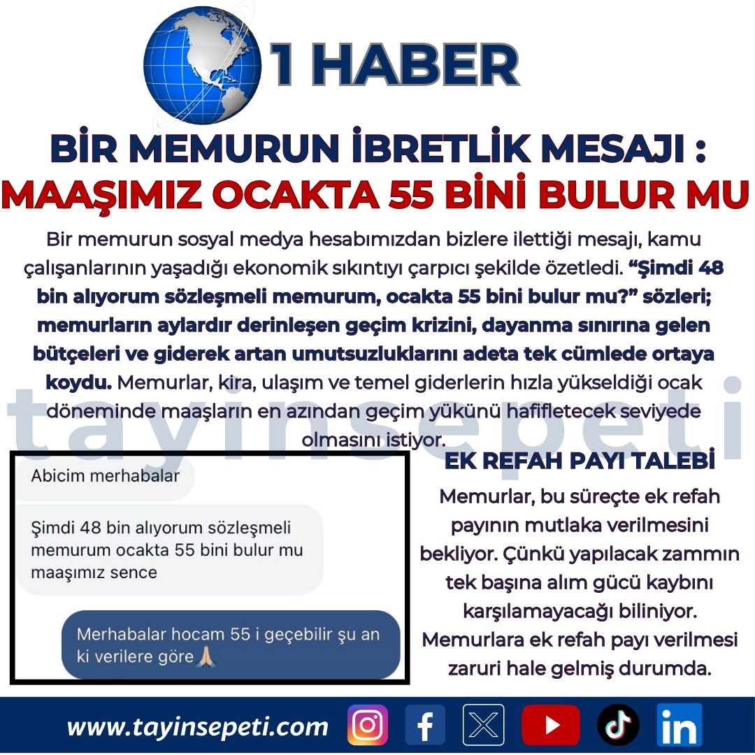 BİR MEMURUN İBRETLİK MESAJI : MAAŞIMIZ OCAKTA 55 BİNİ BULUR MU