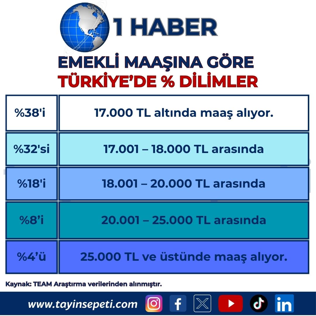 EMEKLİ MAAŞINA GÖRE TÜRKİYE’DE % DİLİMLER