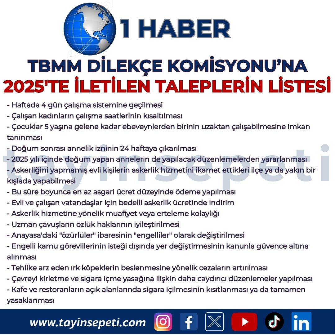 TBMM DİLEKÇE KOMİSYONU’NA 2025'TE İLETİLEN TALEPLERİN LİSTESİ